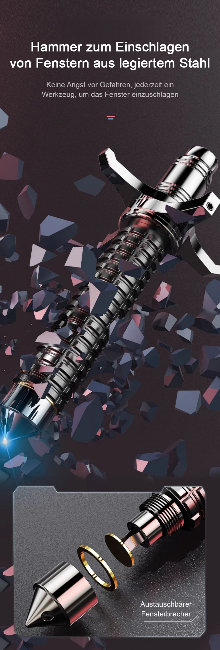 ✨️ 3-in-1: Fensterbrecher, Wanderstock, Selbstschutz